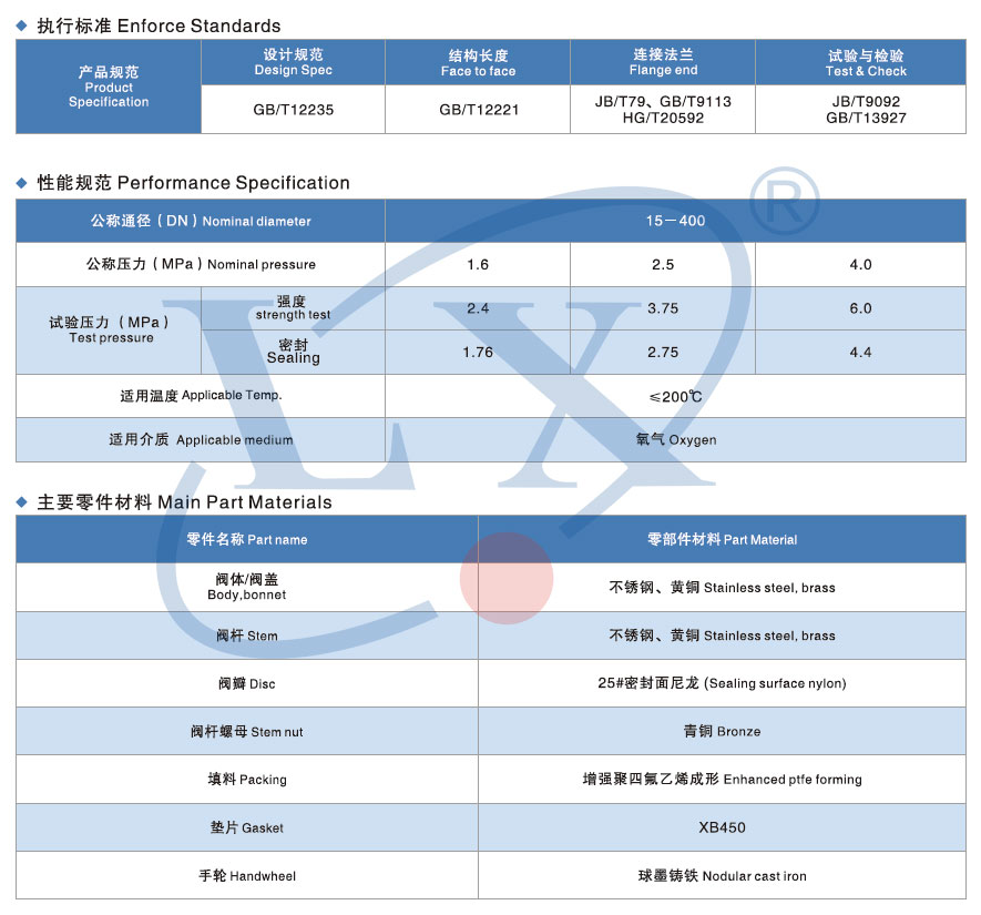 该产品除了具有普通阀门的功能外,又有其自身的特点。在制造时采用严格的禁油措施,并且所有零件在安装前均进行严格的脱脂处理。